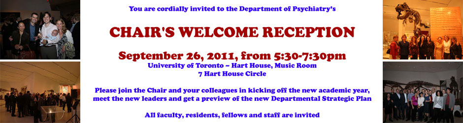UofT Psychiatry is exceptional in depth and breadth and on any dimension that you can measure. It is one of the largest Departments of Psychiatry in the world, and the largest in Canada. Its members are dedicated to carrying out the research and educational missions of the University of Toronto Medical School. Psychiatry is one of 12 clinical departments in the Faculty of Medicine and houses over 700 active faculty members. Situated primarily in eight fully-affiliated teaching hospitals, each member has an academic home in one of the Department’s 14 academic ...Upcoming Events
